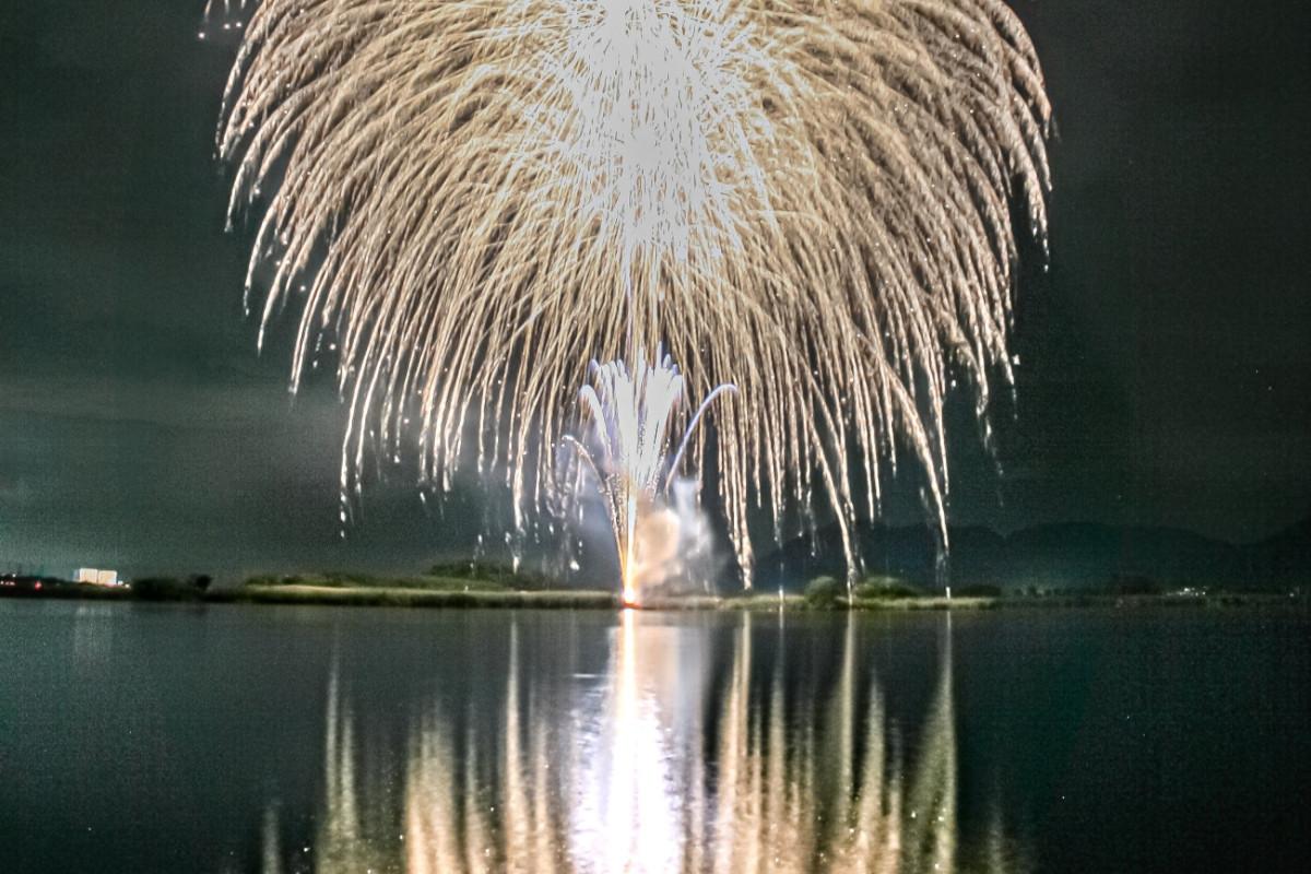 近江八幡市安土町の西の湖で10月18日、「のぶまる花火」と「のぶまるナイトマルシェ」が開かれる。