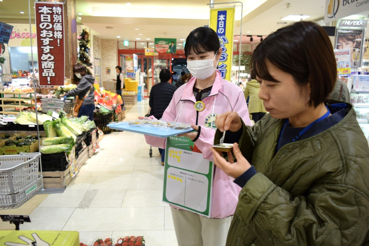 近江八幡市桜宮町のスーパー「アル・プラザ近江八幡」(平和堂)で12月2日、「朝食・野菜摂取メニュー試食会」が開かれた。
