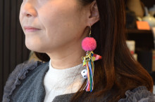 北欧雑貨店「AMBER(アンバー)」(近江八幡市仲屋町)の店主、伊崎陽子さんが左義長まつりにちなんだアクセサリーを作り、現在、販売している。
