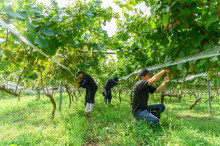同ワイナリーは2011(平成23)年に生食用ブドウの栽培を開始し、2019年から醸造用ブドウを栽培。2022年から委託醸造を行い、今年醸造施設が完成し自社醸造を始めた。代表社員の三崎清隆さんは「ブドウの果実らしさと柔らかな酸味があるヌーボーワインに仕上がった」と話す。