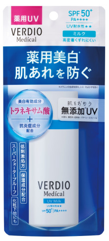 同日、流通限定商品「ベルディオ薬用UVミルク」「ベルディオ薬用UVジェルミルク」も発売した。いずれもSPF50+、PA++++。価格は50ミリリットル=1,980円。