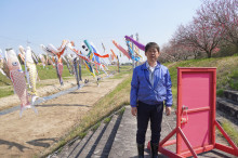 岩田さんは「竜王清流会の取り組みを多くの人に知ってもらい、清掃活動への参加のきっかけになれば。ハナモモとこいのぼりを一緒に楽しめるこの時期に訪れてほしい」と話す。
