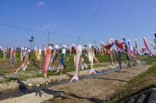 掲揚は地域ボランティア団体「竜王清流会」が行っている。5本のワイヤーにこいのぼりを100匹以上掲げる。同会の岩田宏之さんは「風が吹いた時に一斉に泳ぐ様子は見応えがある」と話す。