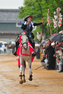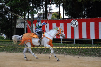 流鏑馬(やぶさめ)節句祭が5月5日、苗村神社(竜王町綾戸)で行われる。