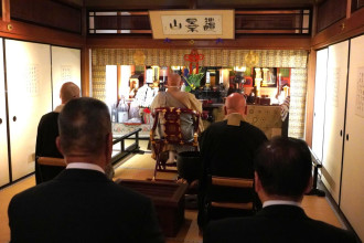 夏休み子ども歴史塾「VRで探れ 安土城のひみつ きみも信長忍者隊になろう!」と題し、小学3年生から中学生を対象に8月1日まで行う。初日の29日は、小学3年生から中学2年生までの子ども11人とその保護者合わせて21人が参加。安土城を映像で再現したVR映像を見た後、子ども11人が「信長忍者隊初級試験」を受験した。試験問題は「安土城は何階建てなのか」「盂蘭盆会(うらぼんえ)の時の月の形は」など。全員が全問正解で合格し忍者隊の認定証を受け取った。