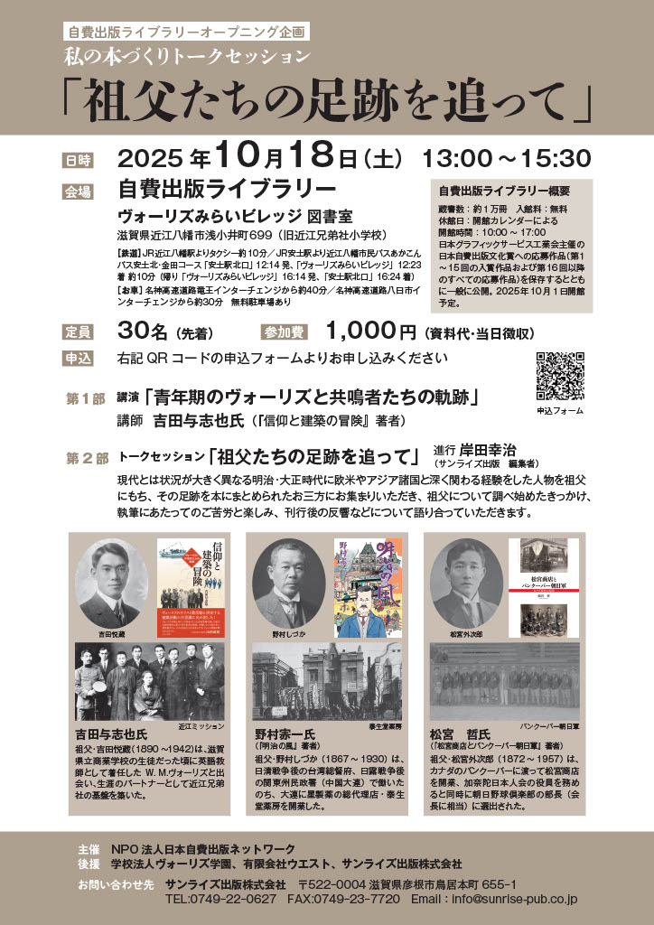 近江八幡市浅小井町のヴォーリズみらいビレッジ内「考耕行」で10月18日、出版経験者によるトークセッションが開かれる。