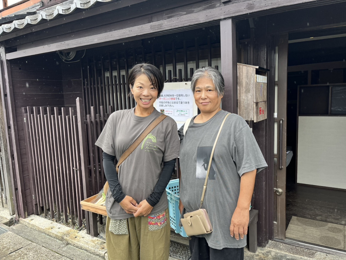農薬や化学肥料を使わない野菜を並べる2軒の農家