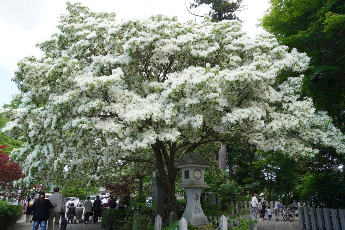 沙沙貴神社の「なんじゃもんじゃ」の花が見頃