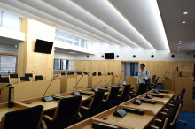 近江八幡市は12月12日、桜宮町で整備を進めてきた市役所新庁舎の報道向け内覧会を行った。