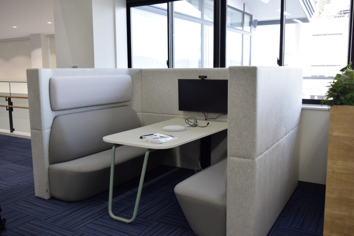 フロア内のオンラインミーティングブース。「会議室への移動も減らせる」と担当者