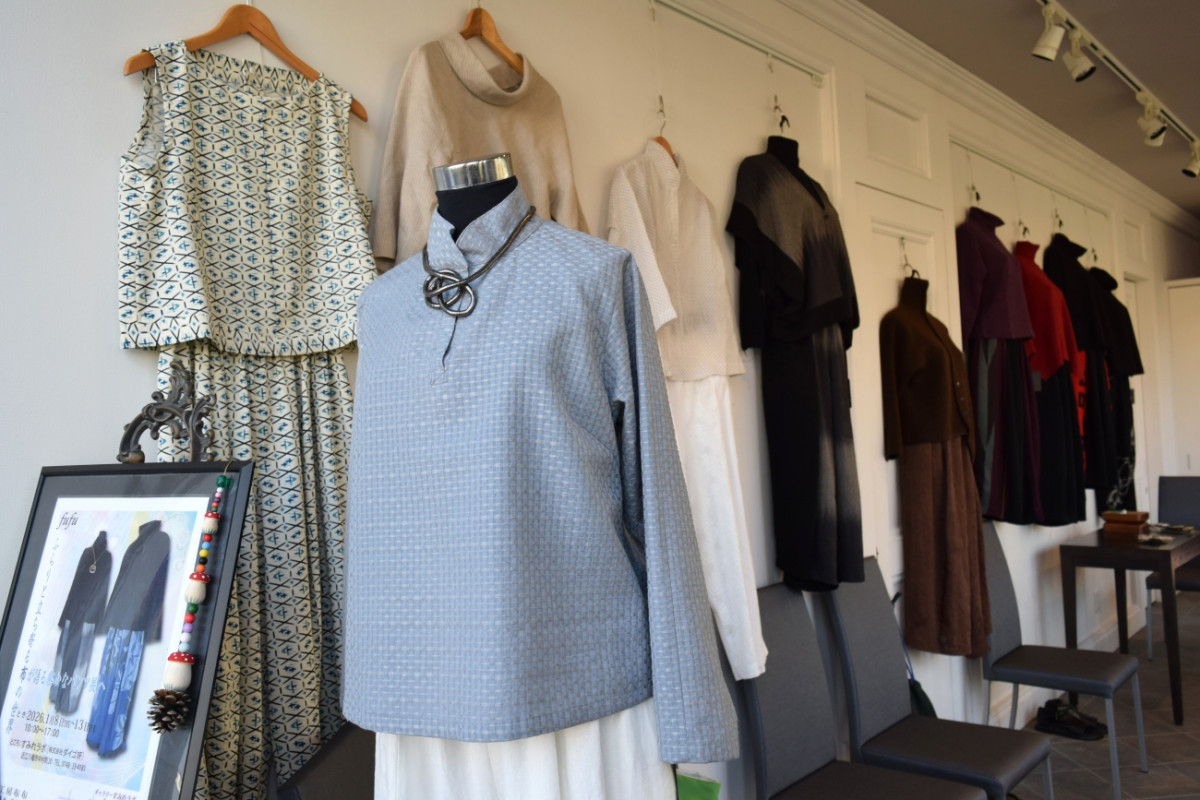 近江八幡市中村町の「ギャラリーすみれラボ」で1月8日、展示販売会「ふらりと立ち寄る布の世界 布が語る密かなパンツ展」が始まった。