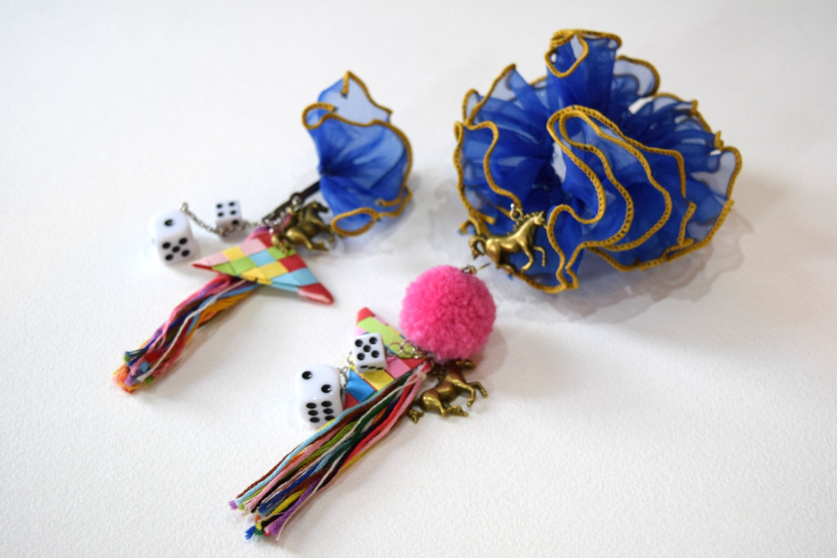 伊崎さんが制作した左義長まつりの山車飾りをモチーフにしたアクセサリー