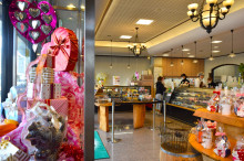 洋菓子店「アンデケン」(近江八幡市鷹飼町)が現在、バレンタインにちなんだチョコレート商品を店頭に並べている。