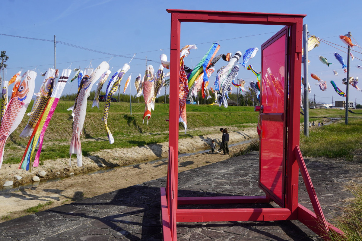 竜王町を流れる善光寺川の山面大橋付近(竜王町山面)に現在、約100匹のこいのぼりが掲げられている。