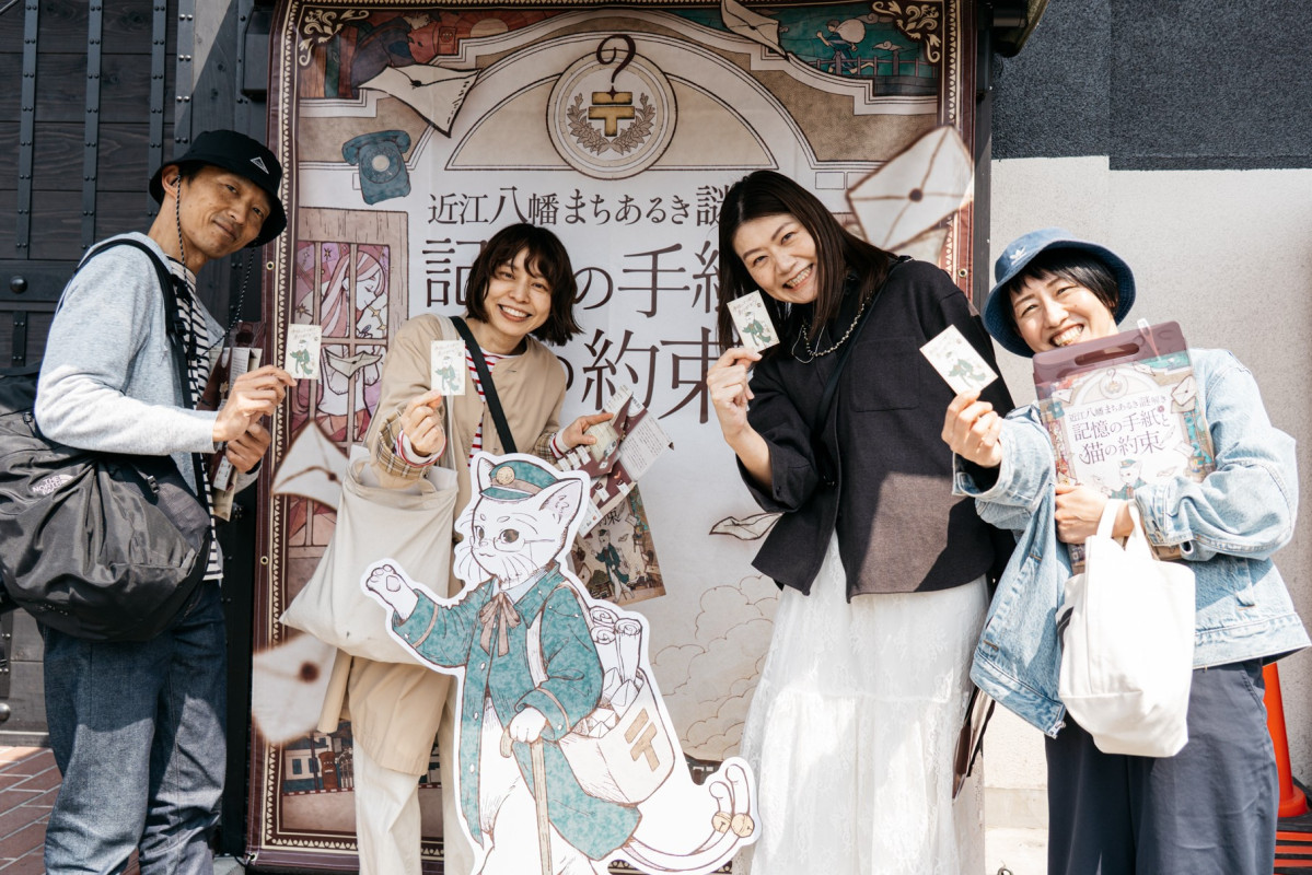 近江八幡市の八幡堀周辺、旧市街地、八幡山ロープウエーで現在、体験型イベント「近江八幡まちあるき謎解き~記憶の手紙と猫の約束~」が開催されている。