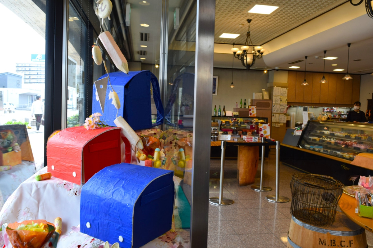 子どもの日に向け、ランドセルのオブジェを設置した店内