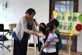 近江八幡市在住の絵本作家・はやしますみさんが、移動図書館車を題材にした絵本を刊行し、市内10園に寄贈した。