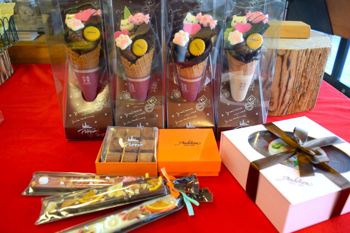 洋菓子店「アンデケン」(近江八幡市鷹飼町)が現在、バレンタインにちなんだチョコレート商品を店頭に並べている。