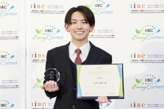「第17回IIBC高校生英語エッセイコンテスト」の表彰式が11月23日、都内で行われ、近江兄弟社高校(近江八幡市市井町)の3年生・小西琉偉さんが個人部門で特別賞を受賞した。